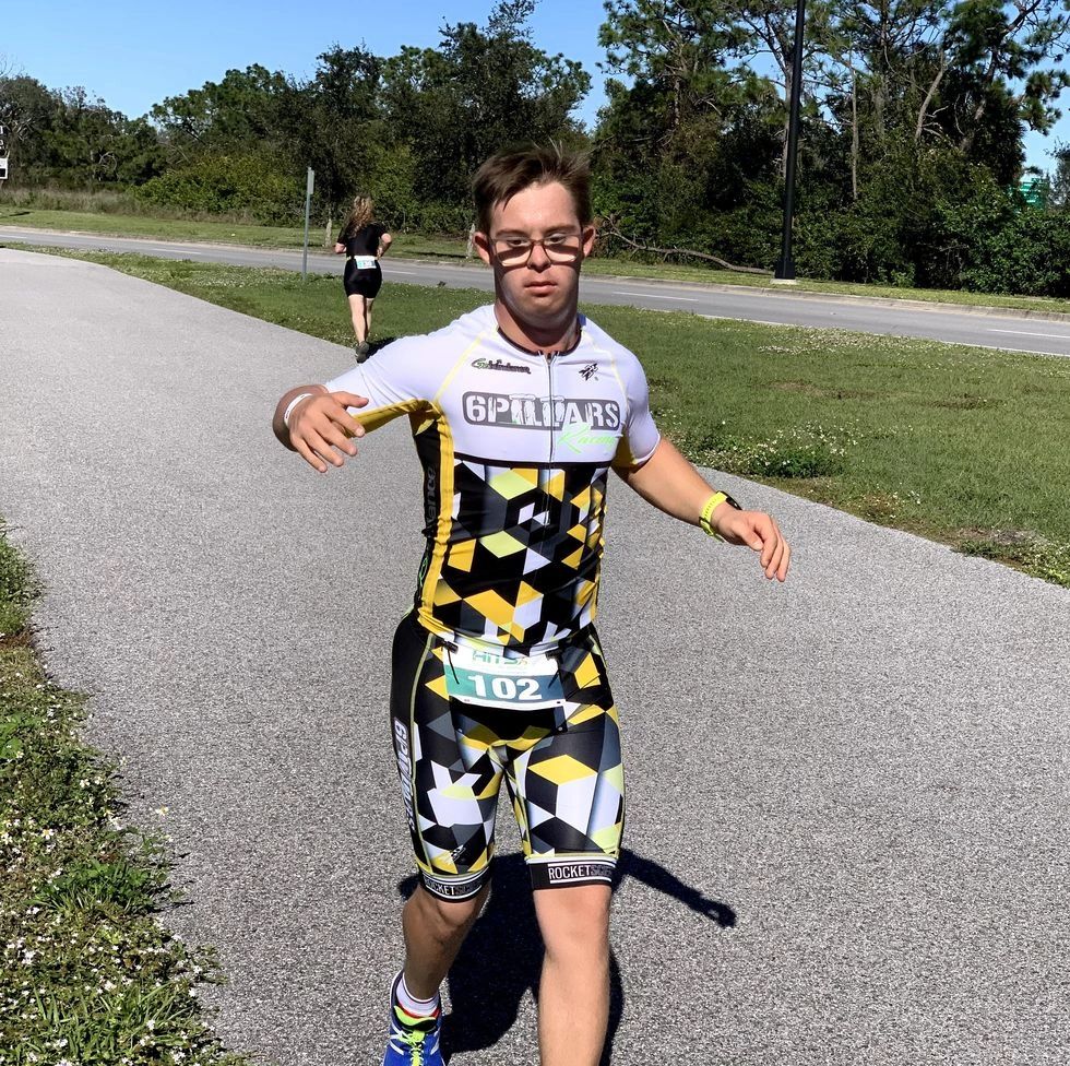 The 20-year-old with Down syndrome loves the swim and enjoys the final sprint to the finish line and into his parent’s arms.